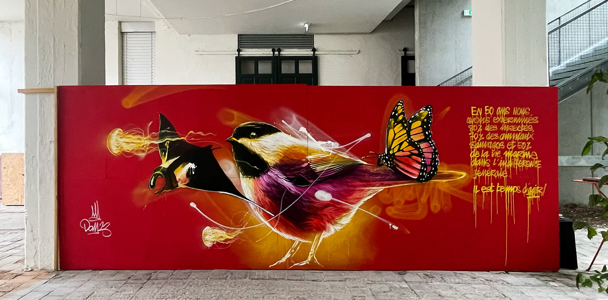 Avec une trentaine d’années à peindre dans la rue, le projet SOULUTION allait forcément faire de la peinture sa colonne vertébrale. L’art à mes yeux est à même de développer une prise de conscience écologique en se servant des émotions pour engendrer des changements sociétaux forts. En même temps, le défit est trop grand pour se limiter à la peinture et j’ai eu besoin de partager par des articles et des vidéos, le fruit de mes recherches, car la dimension pédagogique est un levier indispensable face a l’ampleur des défits qui nous attendent. Plus je m’informe, plus je découvre mon conditionnement et la désinformation qui m’a accompagné toutes ces années. Une désinformation qui ne nous permet pas de comprendre l’étendue des problèmes et de pouvoir y apporter des solutions.