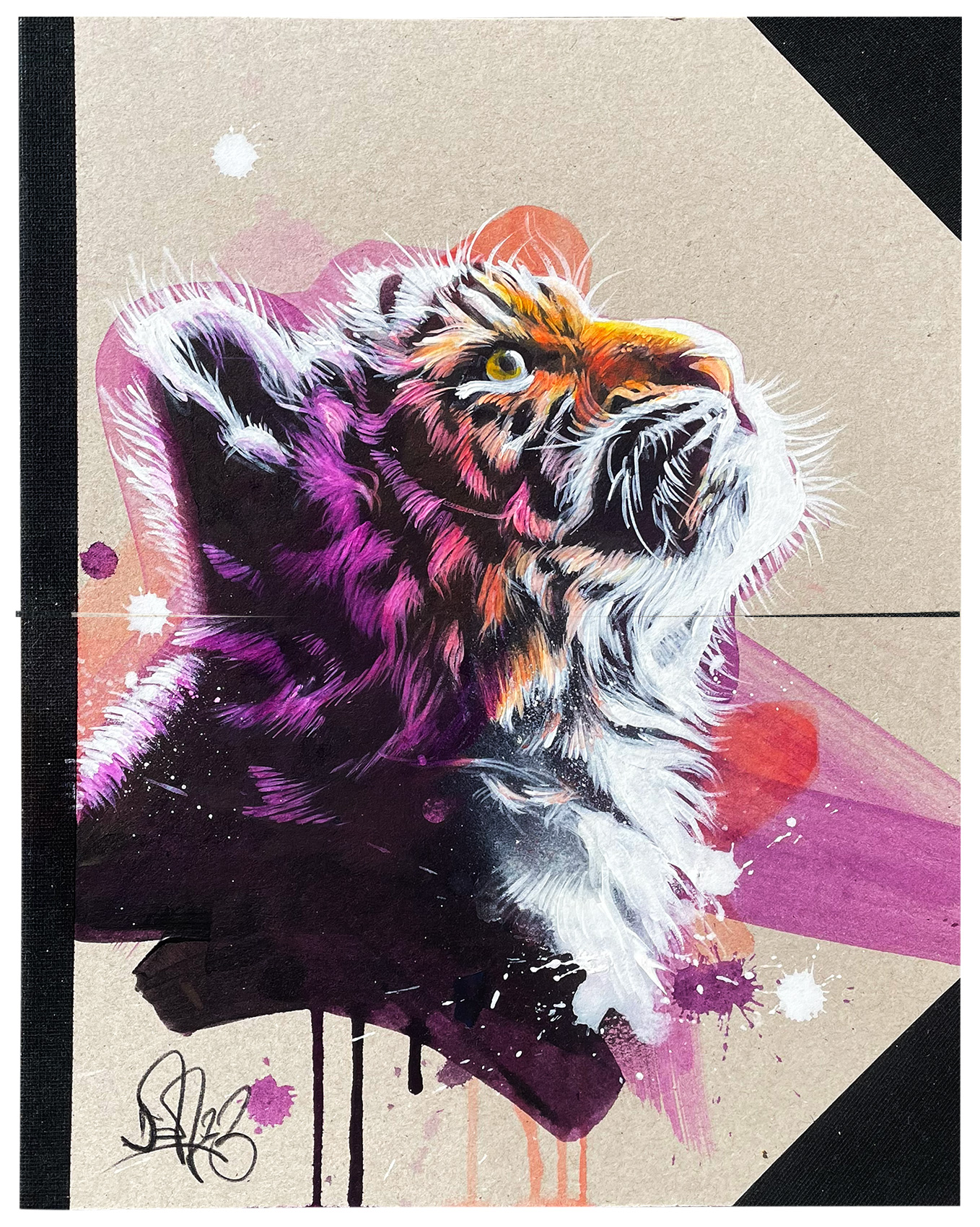 ACRYLIQUE, BOMBE ET ENCRE SUR CARTON À DESSIN.