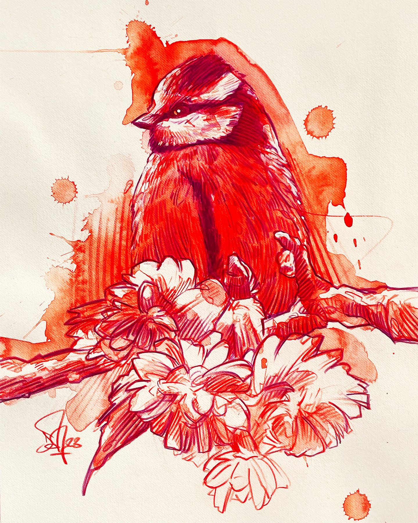 CRAYON AQUARELLABLE ET ENCRE SUR PAPIER ARCHE.